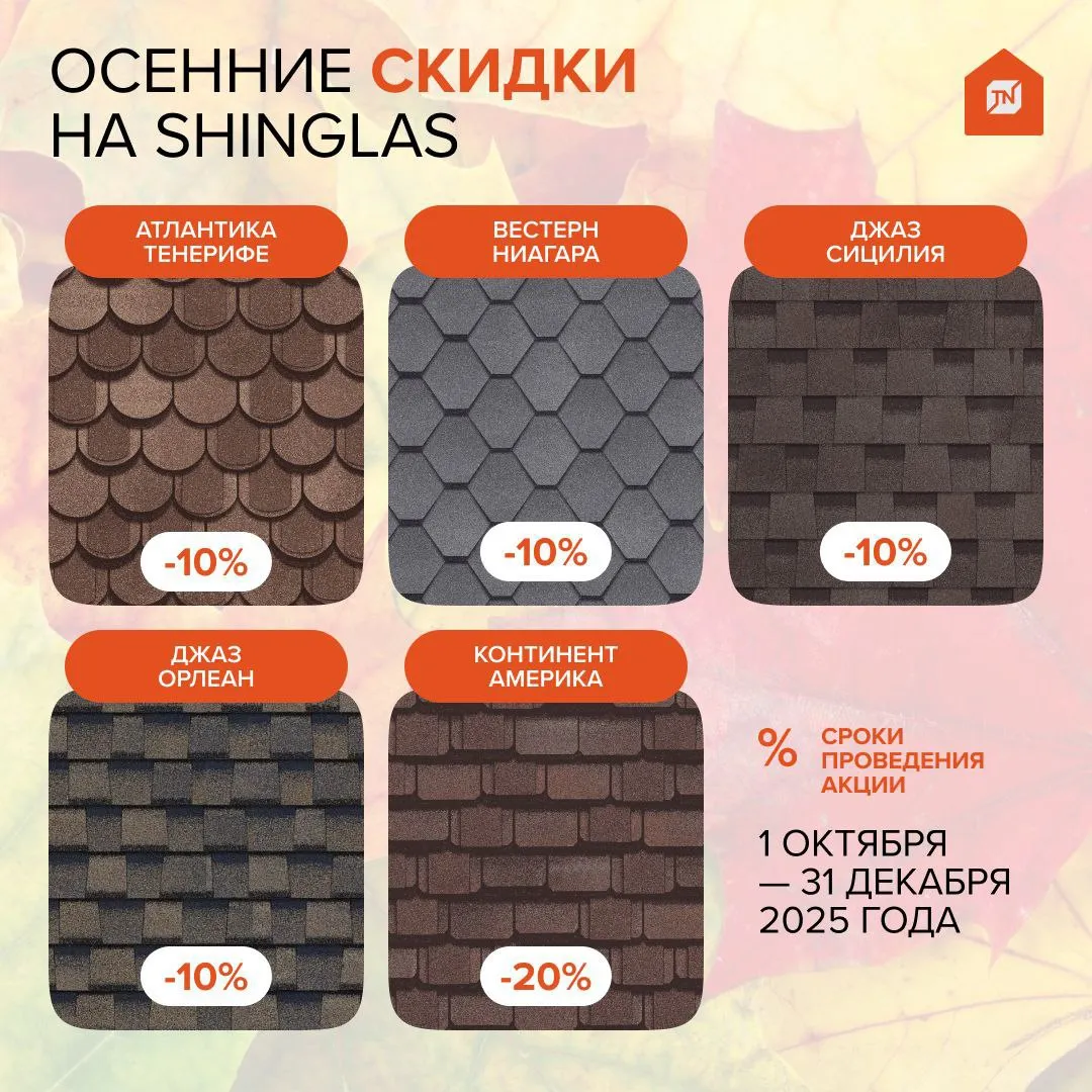 Акция на отдельные цвета многослойной черепицы SHINGLAS